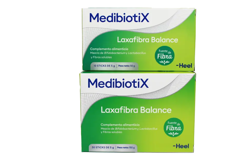 LaxaFibra Balance es un simbiótico que contiene 4 cepas probióticas y fibras solubles (fructooligosacáridos y dextrina blanca). El consumo de fibra mejora el transito intestinal.